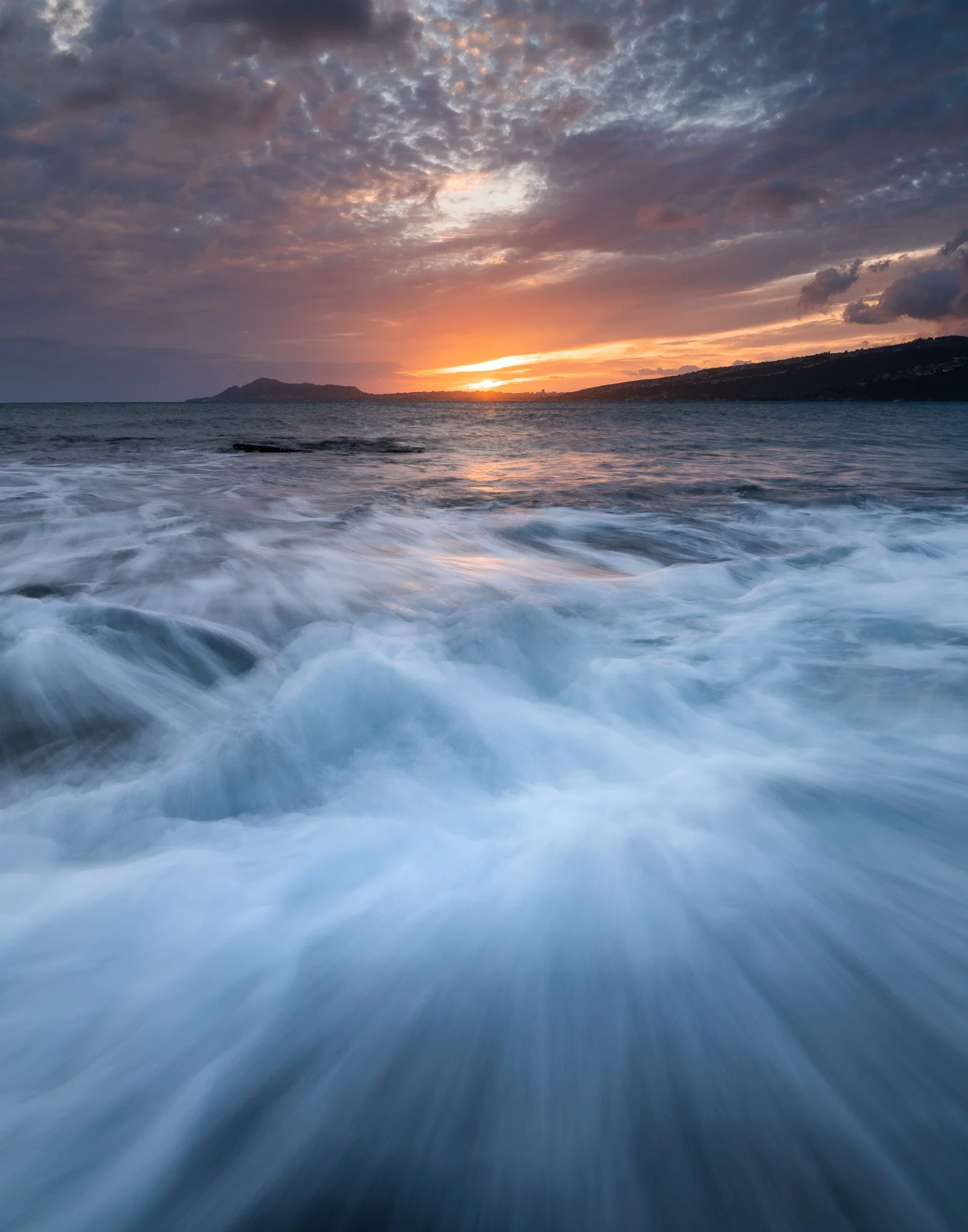 I like how the water movement and clouds complement each other in this scene. The color in the sky continued to get more and more intense as the sun went down.