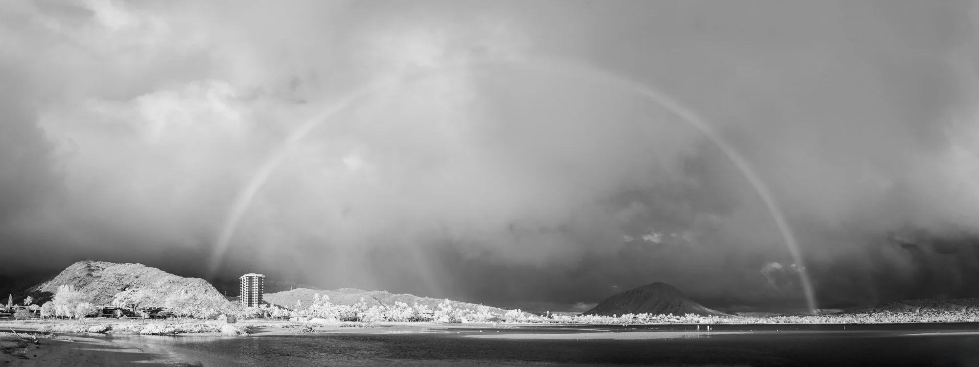 A vivid rainbow arching over the crater. I only had the infrared camera this afternoon, so I wasn’t able to catch any color shots.